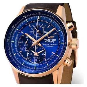 Zegarek Vostok Europe Limousine męski YM86-565B289 stworzony został ze stali szlachetnej 316, jest ona antyalergiczna, nie wywołuje podrażnień ani alergii. Okrągła tarcza o średnicy 45 mm. Różo- złota koperta. W kopercie został umieszczony mechanizm kwarcowy, napędzany za pomocą baterii. Na teleskopach kopert został zamontowany skórzany pasek. Zegarek został obudowany szkłem mineralnym, odpornym na różnego rodzaju uszkodzenia. Niebieska analogowa tarcza. Posiada dużą odporność na zachlapanie, umożliwia nurkowanie z aqualungiem. Zegarek Vostok Europe Limousine męski YM86-565B289 zaopatrzony został stoper, umożliwiające precyzyjny pomiar czasu. Dodatkową funkcją jest alarm, umożliwia nastawienie na konkretną godzinę sygnały dźwiękowego. Kolor został naniesiony metodą próżniową PVD/IP, wyróżnia się wysoką trwałością. Kolor utrzymuje się przez kilka lat, nawet do dekady. Gwarancja producenta na okres 2 lat W zestawie: zegarek, pudełko markowe producenta, instrukcja obsługi, podbita gwarancja z dowodem zakupu