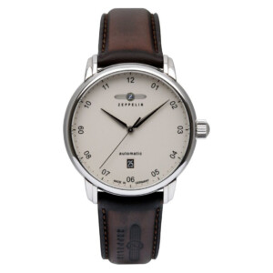 Zeppelin model 8652-5 to kwintesencja elegancji i klasy, które są idealnie podkreślone przez starannie dobrane detale i materiały. Biała, jasna tarcza zegarka, osadzona w okrągłej kopercie o średnicy 41mm wykonanej z nierdzewnej stali, stanowi doskonałe tło dla funkcjonalnego datownika. Brązowy, skórzany pasek dodaje szlachetności, umiejętnie kontrastując z klasycznym, srebrnym wykończeniem. Szafirowe szkło zabezpieczające tarczę, odporne na zarysowania, cenią zarówno amatorzy wyrafinowanego designu, jak i zwolennicy trwałości. Transparentny dekiel umożliwiający podziwianie mechanizmu automatycznego dodaje temu modelowi szczególnego uroku, wnosząc element technicznej ekstrawagancji.